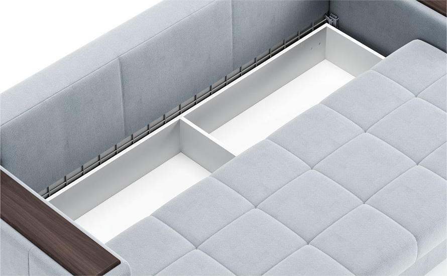 Диван «Ричвуд» — это надёжный каркас из металла, вместительный бельевой ящик и практичные подлокотники из МДФ. Шагающий механизм позволяет одним движением трансформировать диван в удобное спальное место, а приспинная планка не даст спящему ощутить дискомфорт холодной стены. Независимый пружинный блок позволяет комфортно проводить время на диване как в положении сидя, так и во время сна.